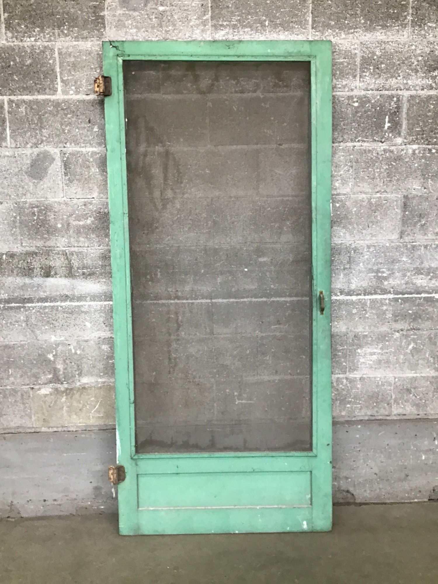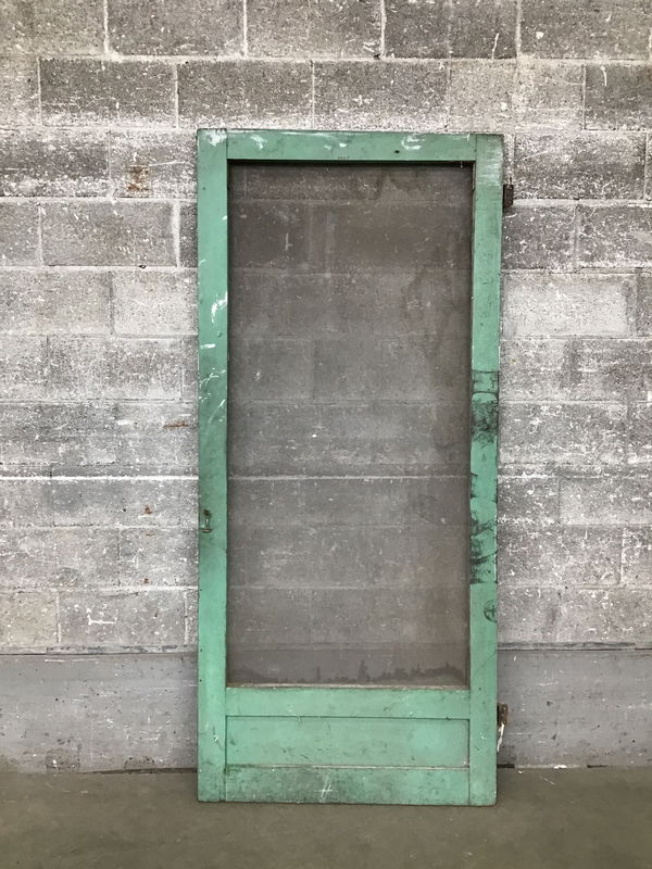 Although this vintage fir screen door might look a little tough, it still seems structurally functional and has WAY more character than most screen doors you'd find at the big box store. Height listed is for the hinge side, which is about 1/4" shorter than the handle side. Looks to be constructed of 5/4" thick fir.