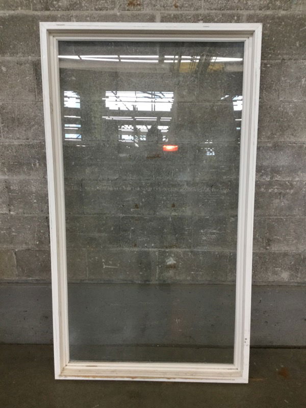 White fixed vinyl window, great for preventing wild jungle animals from wandering through that hole in the side of your house.