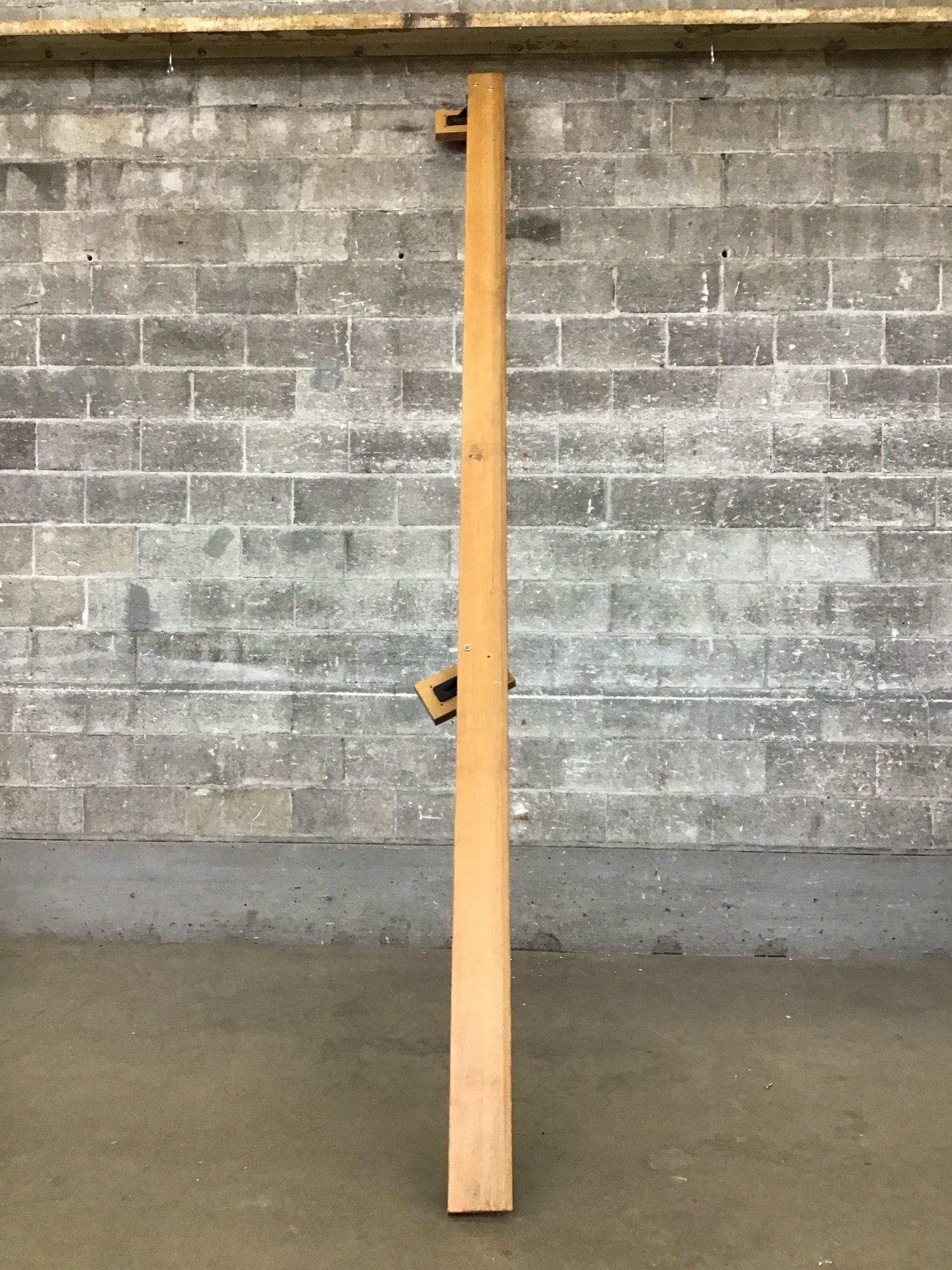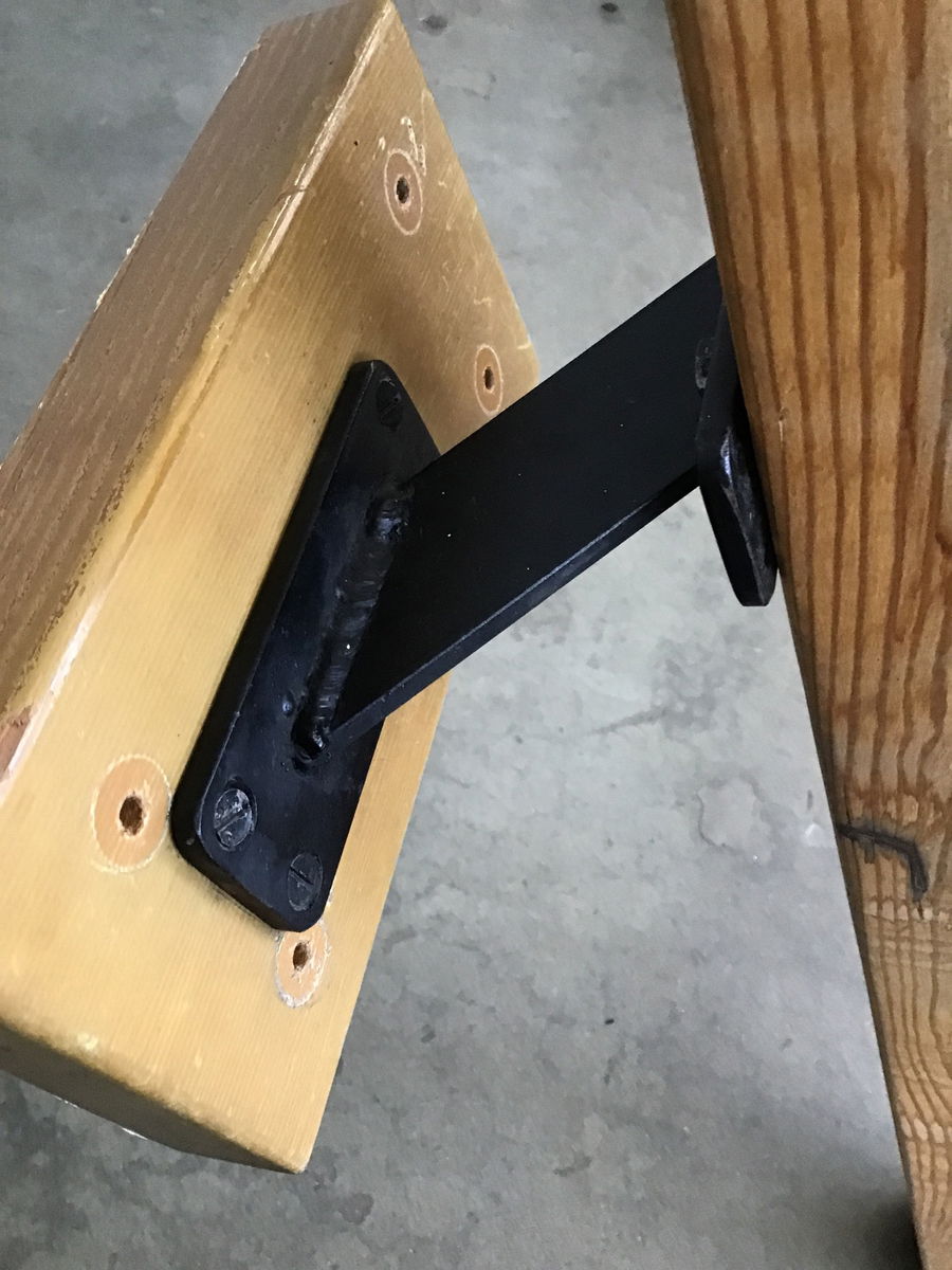 Substantial wooden handrail with heavy steel brackets, very sturdy and ready to be installed.